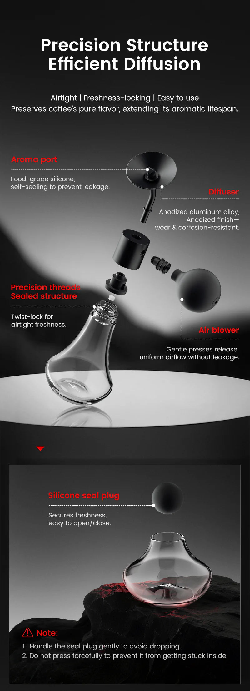 The Coffee Aroma Bottle features a rotatable aroma port and precision airflow system, designed for professional cupping and daily appreciation. Press to activate airflow and explore layered aromas with control and clarity.