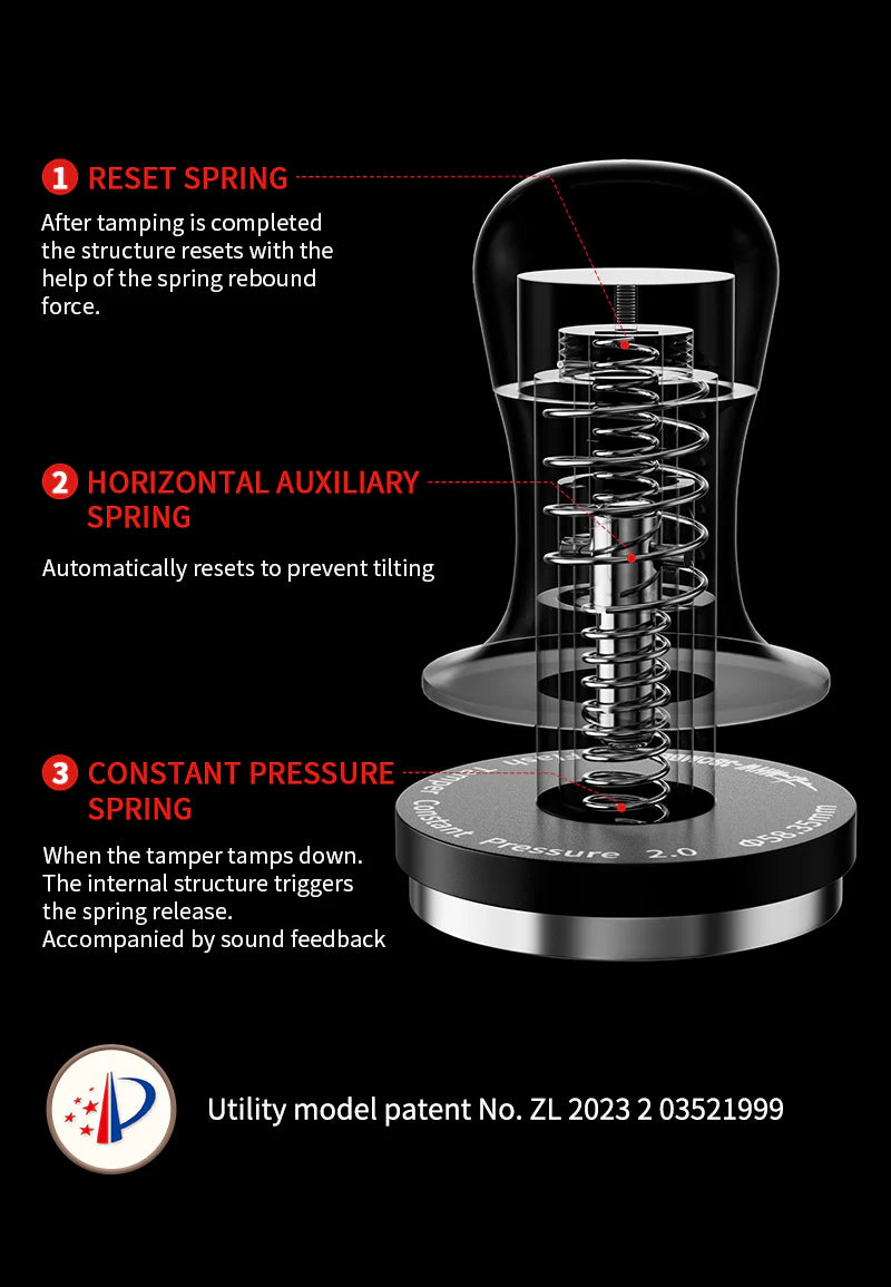 - TAMPER WITH THREE SPRINGS: The MHW-3BOMBER espresso tamper uses an original three-spring design, which not only maintains a constant pressure of 30 lbs, but also provides sound feedback.