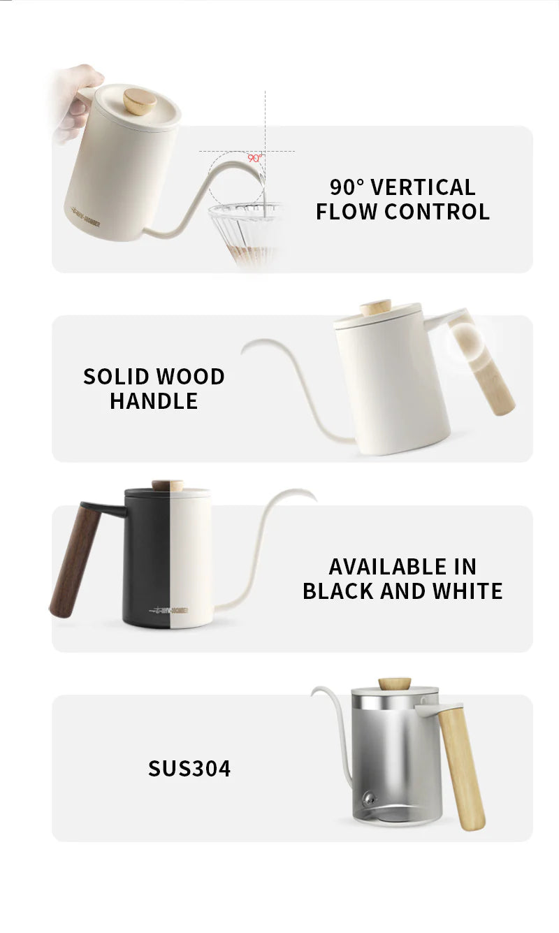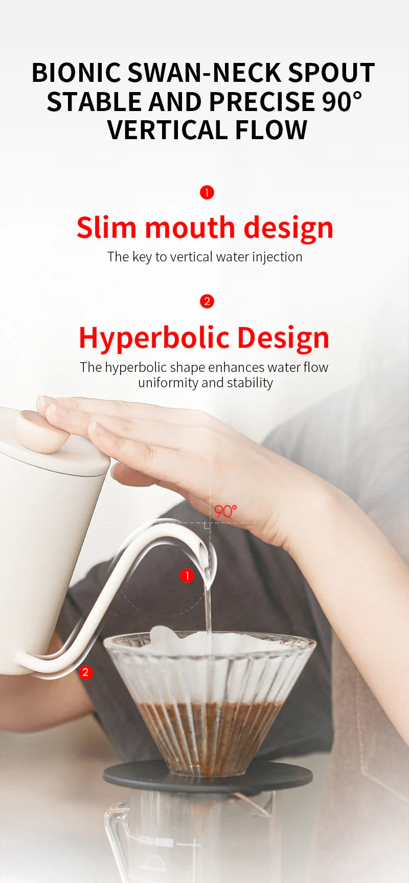 - Kettle goose neck: our brewing kettle is made from genuine goose neck material to give you a reliable pour over brewing experience. it offers a smooth, clean, and comfortable grip that is just right for enjoying your favorite coffee.
