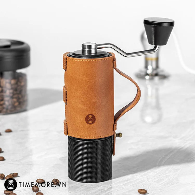 With its sleek, minimalist design, the genuine leather case adds a touch of elegance to your coffee gear. The rich texture and timeless appeal of the leather case enhance the overall look and feel of your Chestnut C2/C3 grinder, elevating your coffee experience. -